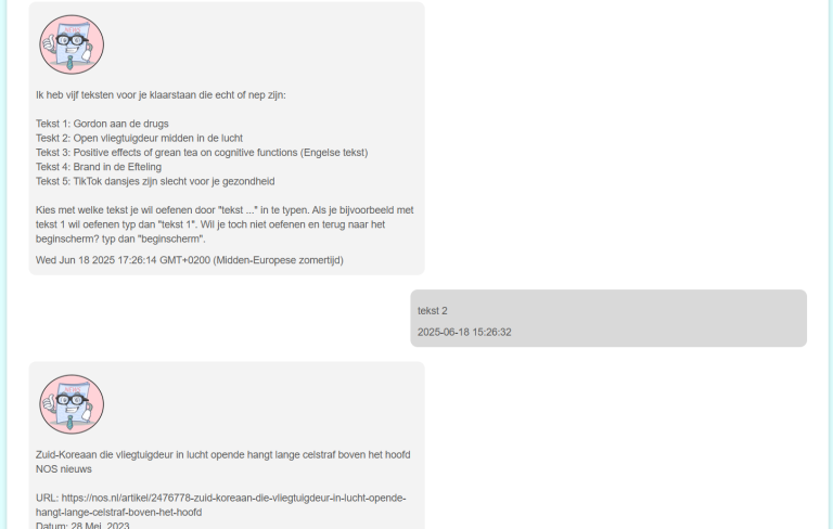 Ik heb ervaring met het bouwen van een chatbot. Zo heb ik een chatbot gebouwd die de gebruiker bewust maakt wat de impact is van fake news en wat men kan doen om dit te herkennen. De gebruiker kan interacteren met Frank en met voorbeelden oefenen.